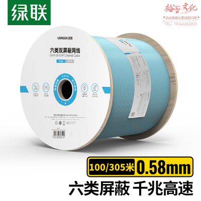 绿联(UGREEN)40319 六类双屏蔽千兆网线 【0.58mm纯铜线芯】 CAT6类8芯双绞屏蔽工程箱线100米 SKU:yzwhyp110988