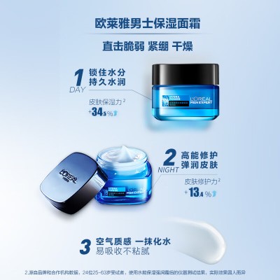 欧莱雅男士水能玻尿酸高保湿锁水强润霜50ml(乳液面霜 补水修护)520 SKU:yzwhyp204055