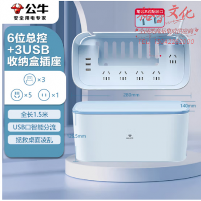 公牛BULL带USB新国标收纳盒延长线插座6位全长1.5米 晴空蓝GN-F2151U SKU:yzwhyp320532