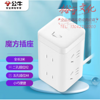 公牛(BULL) 大魔方插座 插线板/插排/排插/接线板/拖线板 GNV-UE2240 白色魔方6位插座全长3米 SKU:yzwhyp320537