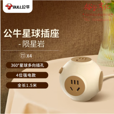 公牛(BULL)星球星际插座 球型 4位总控 全长1.5米 GNV-U104Q 陨星岩 SKU:yzwhyp320571