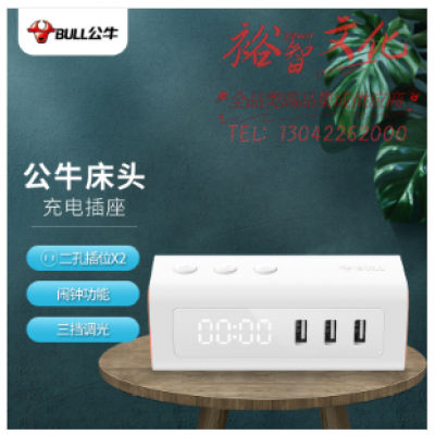 公牛(BULL)床头USB充电插座带闹钟/插线板/插排/排插/接线板/拖线板 GNV-UUP152 2位带USB全长1.5米 SKU:yzwhyp320589