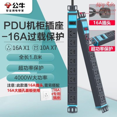 公牛(BULL) GNE-108DE 16A大功率PDU机柜插座/插线板/插排/排插/接线板 超功率保护 8位总控全长1.8米 SKU:yzwhyp320610