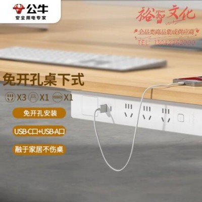 公牛(BULL)GNQ-C1031UE 免开孔 桌下式嵌入式插座 多功能桌面插座 3位+2USB全长1.8米 SKU:yzwhyp320616