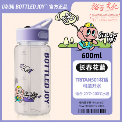 吨吨 BOTTLED JOY吨吨桶 运动健身水壶双饮杯 PCT 吸管款牛长春花蓝0.6L SKU:yzwhyp320650