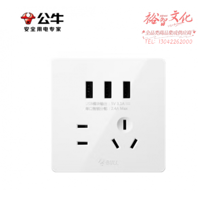 公牛(BULL)开关插座 G12系列 五孔带3位USB插座86型插座面板G12E536S 白色 SKU:yzwhyp320660