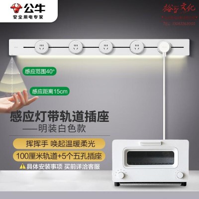 公牛(BULL)明装 灯带轨道插座 可移动墙壁插座壁挂式 100厘米轨道+5个五孔插座白色 SKU:yzwhyp320678