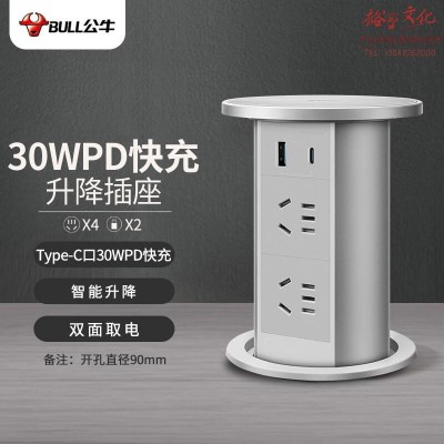 公牛(BULL)30W PD快充电动智能升降/隐藏式/嵌入式/多功能插座 4位五孔+2USB 快充版银色 SKU:yzwhyp320688