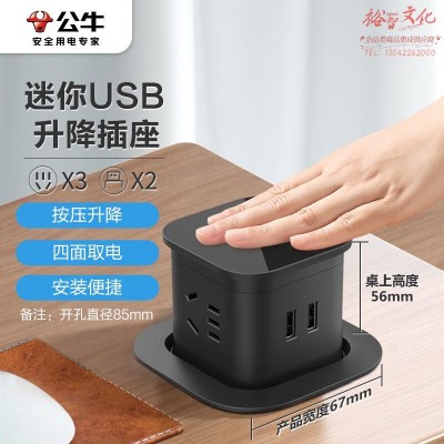 公牛(BULL)升降插座 气动隐藏式/嵌入式/多功能插座 3位五孔+2USB 黑色GN-SQ103U SKU:yzwhyp320689