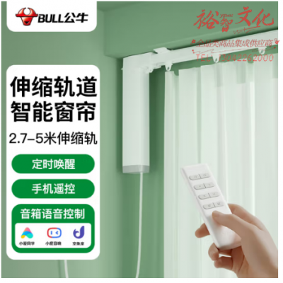 公牛(BULL)智能窗帘 伸缩轨窗帘 小爱同学小度等音箱控制(电机+2.7-5米伸缩轨+遥控器+免费安装)GDC035C SKU:yzwhyp320734