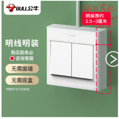 首页 > 建筑建材 > 开关插座 > BULL/公牛 G09系列二位双控带荧光开关 G09K212Y 10A 250V 1个 销售单位:个 SKU:yzwhyp320792