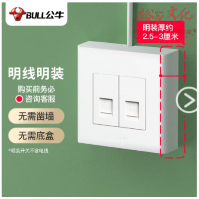 公牛(BULL) 明装开关插座 G09系列 电话电脑插座 86型插座面板 G09T212 SKU:yzwhyp320799