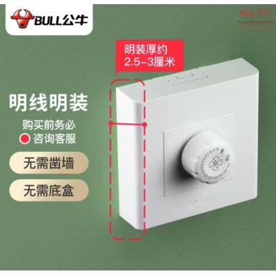 公牛明装墙壁开关插座G09D102调速开关面板 86型墙插面板 SKU:yzwhyp320800
