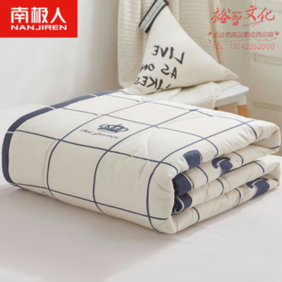 南极人 被子被芯1.1斤 空调被夏凉被薄盖被 双人水洗棉纤维填充 奶白深灰200*230cm SKU:yzwhyp320866