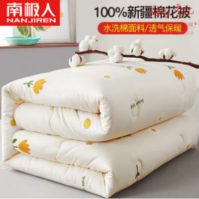 南极人 100%新疆棉花被加厚5斤 水洗棉面料 单人 橘色小花150*200cm SKU:yzwhyp320877