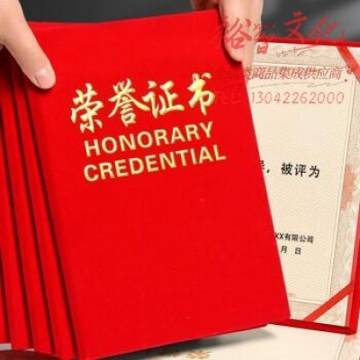 荣誉 证书 打开A4红绒20本起售 SKU:yzwhyp320892