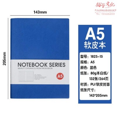 博文记事本PU软皮简约皮面本子25K加厚学习用本【(1825-15)A5 深蓝】 SKU:yzwhyp320929