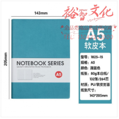 博文记事本PU软皮简约皮面本子25K加厚学习用本 【(1825-15)A5 湖蓝】 SKU:yzwhyp320932