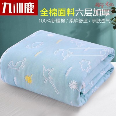 九洲鹿 六层纱布毛巾被夏凉被单人空调被儿童婴儿夏被午睡毯透气小盖毯 恐龙豆青 200*230cm SKU:yzwhyp321029