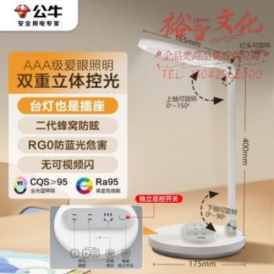 公牛(BULL)插座台灯AAA级爱眼照明ML-E012C-CS无极调光三插位学习阅读台灯 SKU:yzwhyp321036