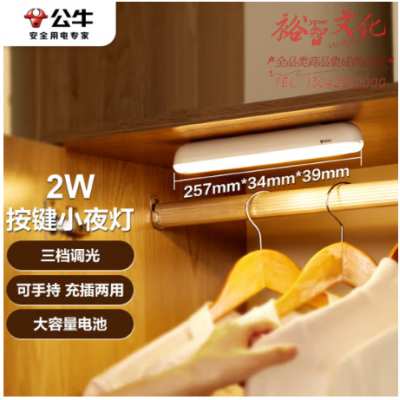 公牛(BULL)LED酷毙灯MC-B003D-AD床头衣柜条形柔光小夜灯按键款2W3档调光 SKU:yzwhyp321048