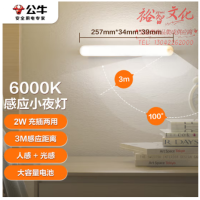 公牛(BULL)LED酷毙灯MC-A003D-DD床头衣柜条形柔光小夜灯感应款 2W 6000K SKU:yzwhyp321063