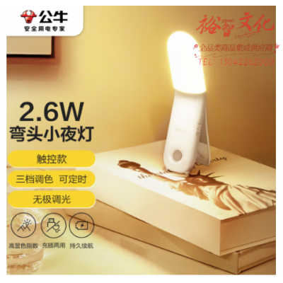 公牛(BULL)磁吸弯头夜灯MC-B002G-AD无极调光可定时触控款2.6W三档调色 SKU:yzwhyp321066