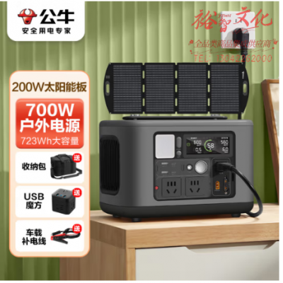 首页 > 电气设备 > 蓄电池及充电装置 > 公牛快充户外移动电源700W 极夜灰 +200W太阳能板 笔记本充电宝自驾露营摆摊220V储能电源应急停电备用 SKU:yzwhyp321086