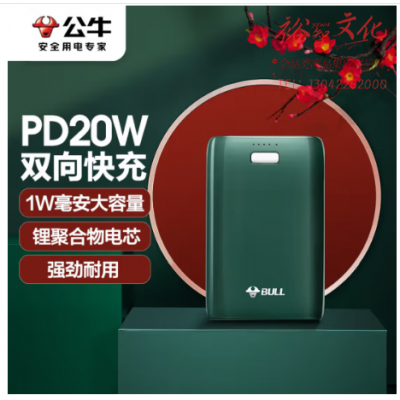 公牛 BULL PB7102 绿色 1W毫安时充电宝20W PD双向快充移动电源小巧便携 支持苹果/安卓/Type-C SKU:yzwhyp321089