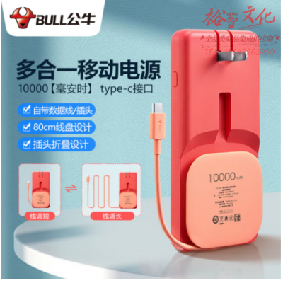 公牛 BULL GNV-PB310T 珊瑚橘 公牛多合一移动电源/10000毫安时充电宝/线充三合一/Type-C输出 SKU:yzwhyp321102