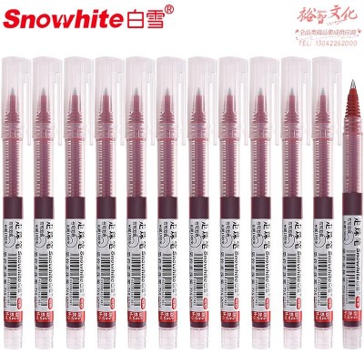 白雪(snowhite)T15直液式走珠笔 子弹头中性笔 速干签字笔 水笔0.5mm红色10支/盒 SKU:yzwhyp204137