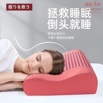 北极绒 记忆棉枕芯全棉绗缝学生宿舍波浪高低枕带枕套 红格子 50*30cm SKU:yzwhyp321141