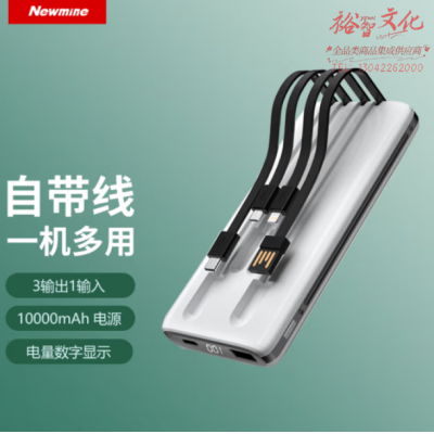 纽曼(Newmine)AL01 10000毫安时充电宝 自带四线数显移动电源 白 SKU:yzwhyp111186