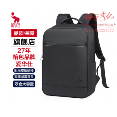 爱华仕 14英寸笔记本电脑双肩包女大容量商务男士背包可套拉杆4489黑色 SKU:yzwhyp321424