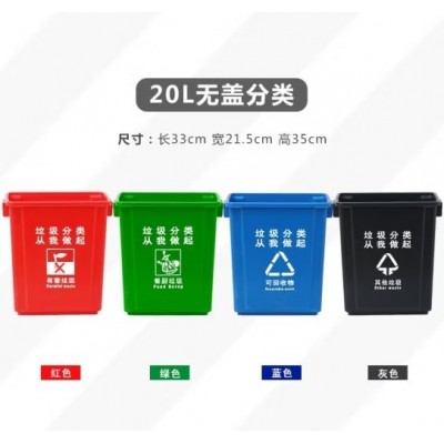 户外加厚分类垃圾箱(方形/无盖20L)红色有害垃圾26.5cm*18cm*35cm