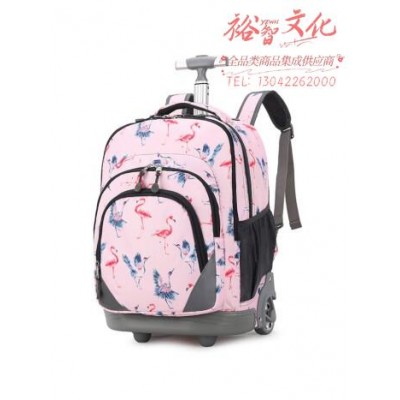 自然鱼(ZIRANYU)初中生小学生拉杆书包可爬楼梯大容量学生背包 粉色火烈鸟 SKU:yzwhyp321465