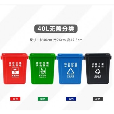户外加厚分类垃圾箱(方形/无盖40L)绿色厨余垃圾32cm*20.5cm*47.5cm