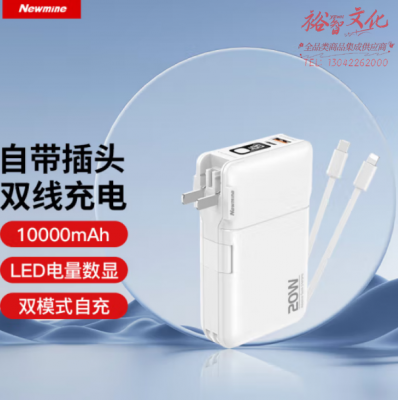 纽曼(Newmine)AL19充电宝自带线20W超级快充10000毫安时 带插头 白 SKU:yzwhyp111230
