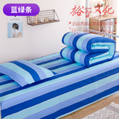 首页 > 装具 > 床罩 > 三五八五 被褥套装 宿舍单人棉花被芯春秋被 蓝绿条 1.2米单人床6斤被六件套 多色可选 SKU:yzwhyp321666
