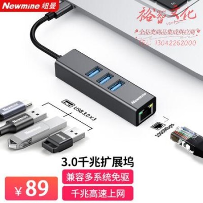 纽曼(Newmine)LAN-TH303 Type-C3.0转千兆网口扩展坞分线器 有线网卡RJ45接口转换器适用 SKU:yzwhyp111237