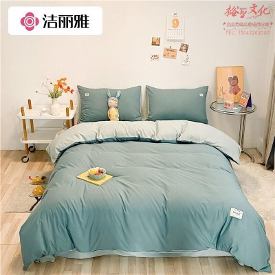 洁丽雅四件套 床上四件套被套床单枕套学生宿舍套件 双人印花被罩套件 1.5/1.8米床(被套:2×2.3M)浅石蓝 SKU:yzwhyp111250