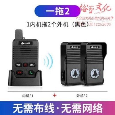 首页 > 广播、电视、电影设备 > 组合音像设备 > 会议、广播及音乐欣赏系统 > 山水间S8 无线语音对讲门铃超远距离别墅专用双向通话对讲机老人一键呼叫器 一对二套装 黑色款 SKU:yzwhyp321834