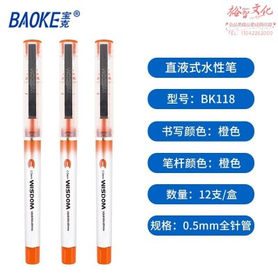 宝克(BAOKE)BK118 品质直液式走珠笔全针管0.5mm中性笔 学生用水笔签字笔 橙色 12支/盒 SKU:yzwhyp204187