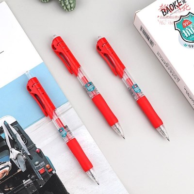 宝克(BAOKE)KJ11 抑菌0.5mm按动中性笔子弹头办公签字笔水笔 红色 12支/盒 SKU:yzwhyp204194