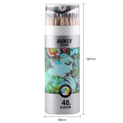 宝克(BAOKE)PO1648 原木油性48色三角杆彩铅彩色铅笔 填色彩笔绘画笔 纸筒装 SKU:yzwhyp204195