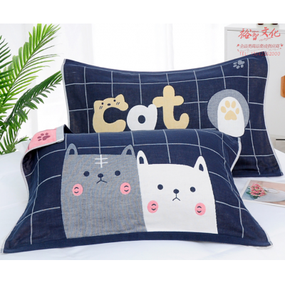 沐凡 枕巾纯棉加大加厚 四层纱布枕巾 格子猫78*53cm(对) SKU:yzwhyp322139