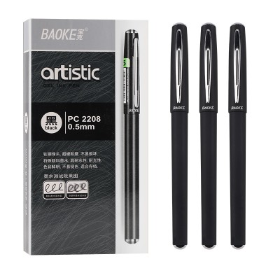 宝克(BAOKE)PC2208 0.5mm中性笔签字笔水笔 磨砂笔杆 黑色 12支/盒 SKU:yzwhyp204208
