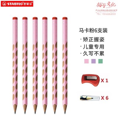 思笔乐(STABILO)洞洞笔铅笔 小学生文具 粗三角杆儿童易抓握 马卡龙粉6支装322/16HB 大规格铅笔 SKU:yzwhyp204222