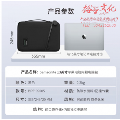 新秀丽(Samsonite)笔记本电脑内胆包13英寸苹果12.9IPad包保护套手拿包BP5*005黑色 SKU:yzwhyp322205