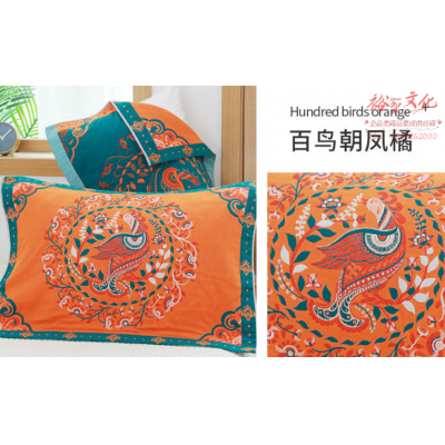首页 > 装具 > 枕巾 > 沐凡 纱布枕巾纯棉一对装 加大加厚全棉枕头巾 百鸟朝凤橘50*80cm SKU:yzwhyp322257